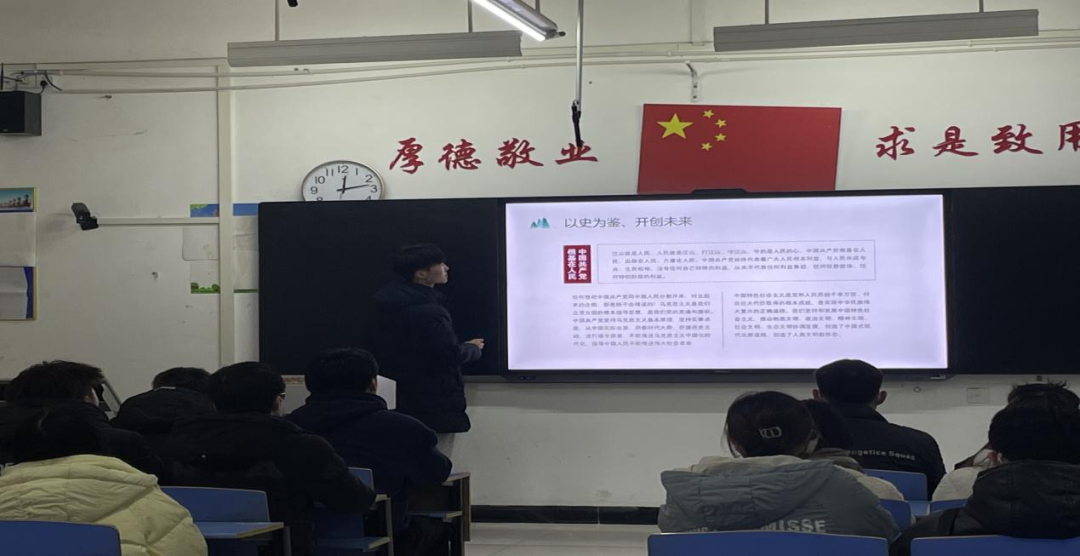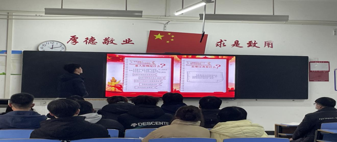 创新服务部工作人员从基本概念、主题议程、学习目的和重要精神等方面带领同学们深入学习习近平总书记在党的二十大上的报告和大会精神,全面准确把握党的二十大提出的一系列重大思想理论、重大方针政策和重大工作部署,引导同学们能够把思想和行动迅速统一到党的二十大精神上来。