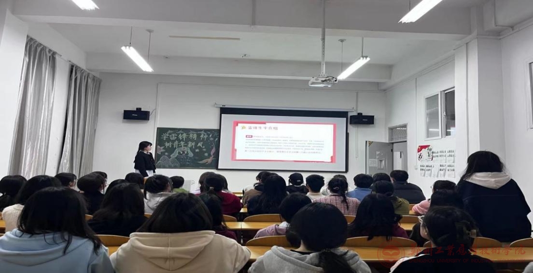 主题团日活动伊始,团支书带领大家起立齐唱团歌。紧接着,团支书以图片的形式向大家讲述了伟大的雷锋精神,号召大家要积极学习雷锋精神并将其发扬光大。最后,团支书邀请同学们谈论了关于雷锋精神的看法以及本次主题团日活动的收获。